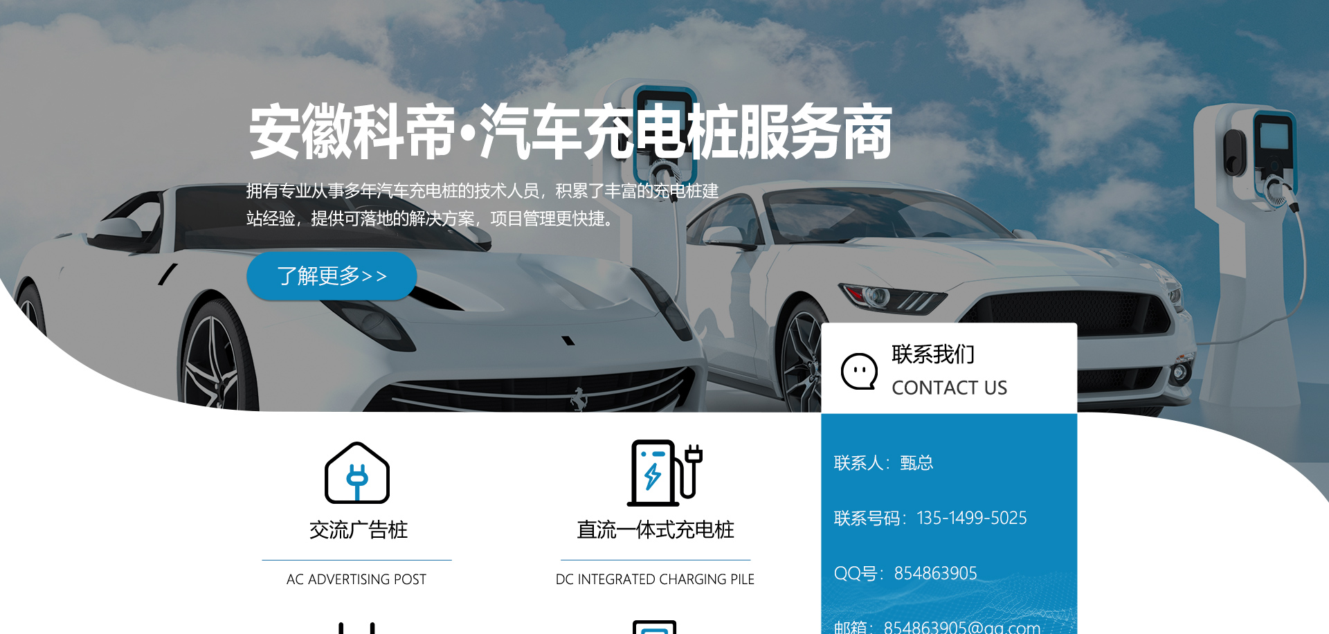 安徽科帝新能源科技有限公司坐落于安徽省會-合肥,是一家研發(fā)、生產(chǎn)智能充電樁設(shè)備,汽車充電站后臺監(jiān)控管理系統(tǒng)和生產(chǎn)高壓開關(guān)設(shè)備的企業(yè).由專門的研發(fā)團隊、管理團隊按照現(xiàn)代化企業(yè)制度規(guī)范設(shè)立的有限責(zé)任公司。致力于為能源智能、安全的應(yīng)用和節(jié)能減排提供整體的技術(shù)與產(chǎn)品解決方案。科帝集研發(fā)、設(shè)計、生產(chǎn)、銷售以及服務(wù)于一體,在電動汽車充電方案,充電設(shè)施建設(shè)和城市配電方面擁有廣泛的技術(shù)研究及經(jīng)驗積累,為客戶提供安全、智能的充電設(shè)備及充電運營站建設(shè)一體化解決方案。并堅持以人為本、質(zhì)量為先、顧客至上、不斷創(chuàng)新”的企業(yè)理念,為能源行業(yè)的發(fā)展、節(jié)能減排做出重大的貢獻。公司擁有豐富的產(chǎn)品種類,目前科帝已研發(fā)生產(chǎn)了三十多種產(chǎn)品,充電設(shè)備有直流一體式充電樁、直流分體式充電樁、直流廣告樁、交流廣告樁、廣告一體樁、壁掛交直流樁;等多種充電設(shè)備;每一款產(chǎn)品都是精心打造,力求為客戶提供優(yōu)越的用戶體驗。展望未來科帝將通過持續(xù)的自...